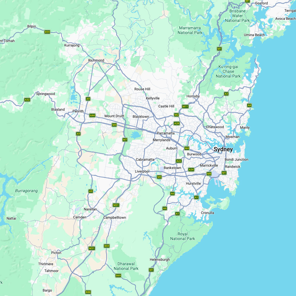 Sydney jest dynamiczną metropolią położoną nad jedną z najpiękniejszych naturalnych przystani na świecie – Sydney Harbour. Na powyższej mapie możesz zobaczyć układ miasta, w tym jego centralną dzielnicę biznesową (CBD), ikoniczne nabrzeża oraz rozległe przedmieścia rozciągające się od brzegów oceanu aż po podnóża Gór Błękitnych.